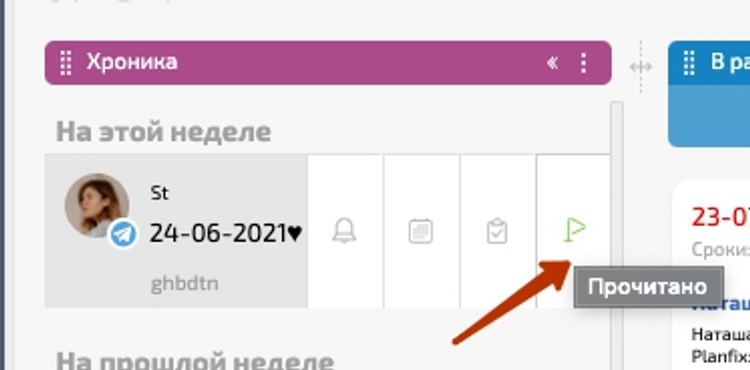 Для зменшення пропущених повідомлень, у воронці продажів ми налаштували Хроніку. Вона містить повідомлення, які зникають тільки тоді, коли на них натискаєш у середині задачі.
