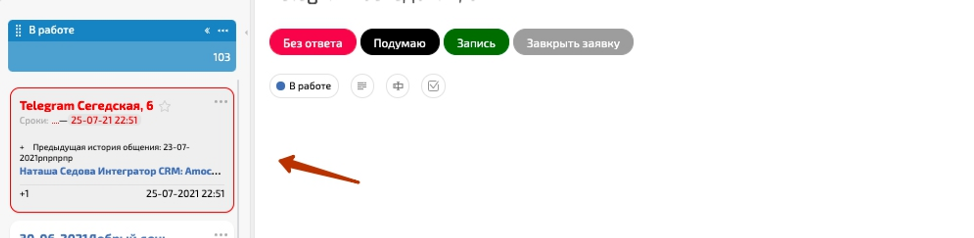 Ті заявки, котрі залишаються без уваги менеджера протягом 30 хвилин, загоряються червоним кольором як нагадування: терміново взяти їх у роботу.